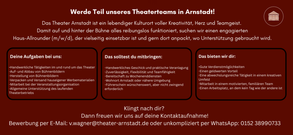 Mit einer Kombination aus Klassikern und modernen Inszenierungen schafft das Theater Arnstadt ein vielfältiges kulturelles Erlebnis für Jung und Alt.